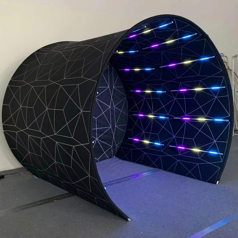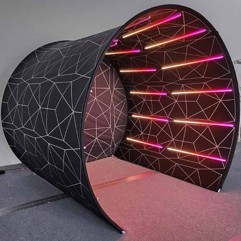 Unser Neon LED Vogue Tunnel sind ein beeindruckendes visuelles Erlebnis, dass oft auf modernen Veranstaltungsorten, Clubs oder Kunstinstallationen zu finden ist. Sie bestehen aus leuchtenden Neon-LED-Lichtern, die in verschiedenen Farben und Mustern angeordnet sind, um einen faszinierenden Tunnel-Effekt zu erzeugen.